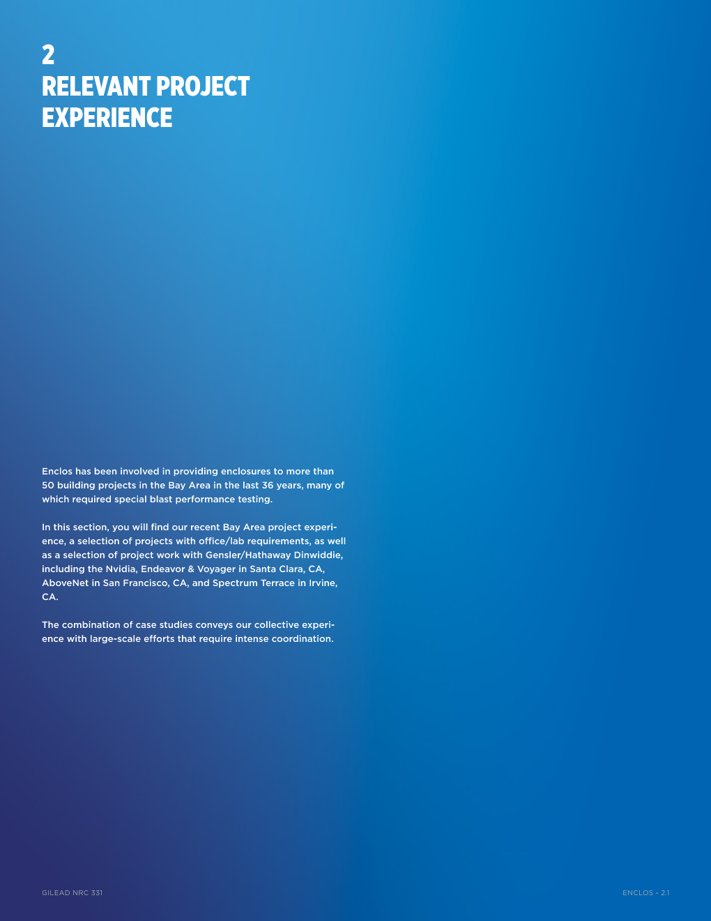 Proposals I design can range from 20 to over 100 pages across several volumes. Typically, I have about a week to compile a proposal. Below is an excerpt from a recent proposal.
