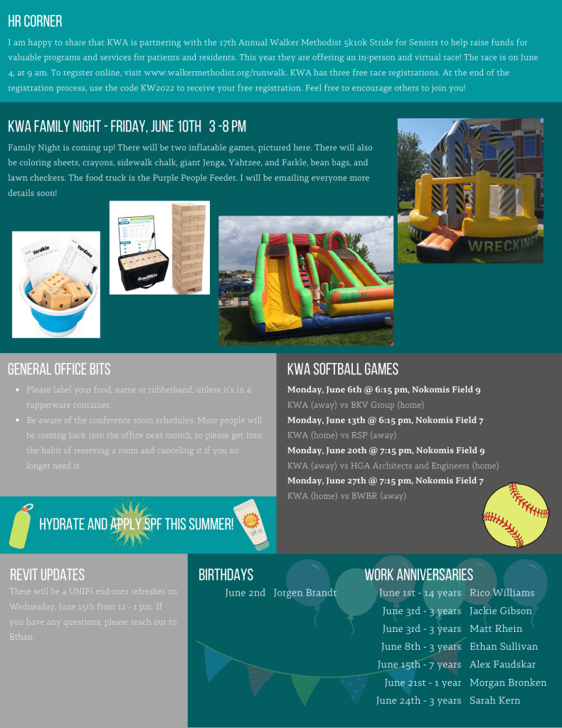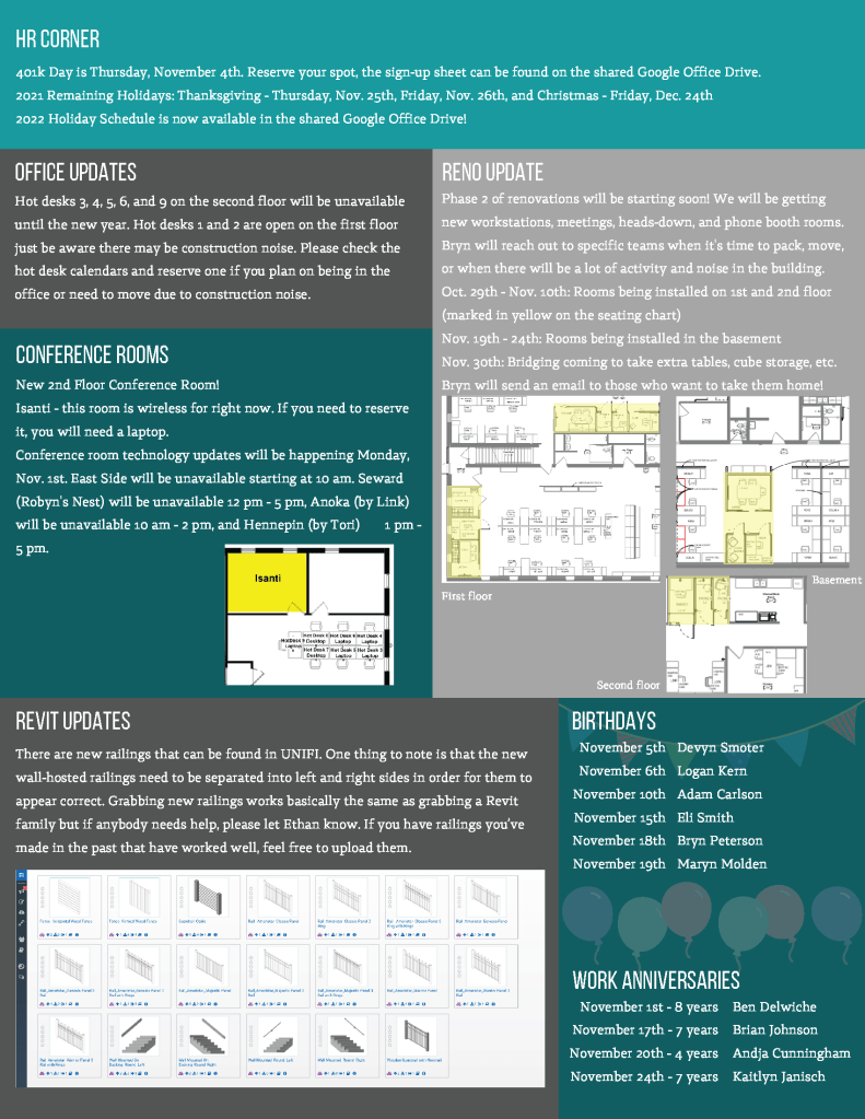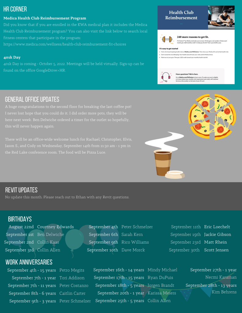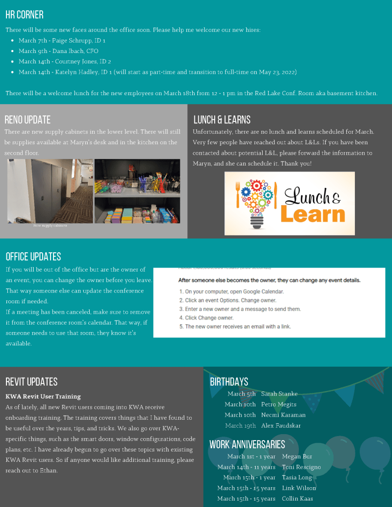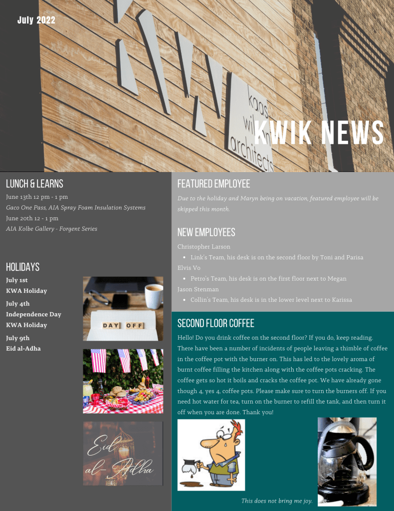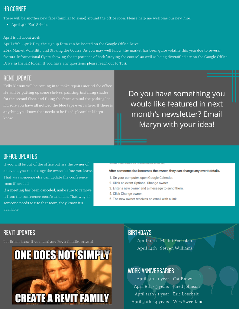 The internal newsletters were meant to keep employees updated on events and general office updates.